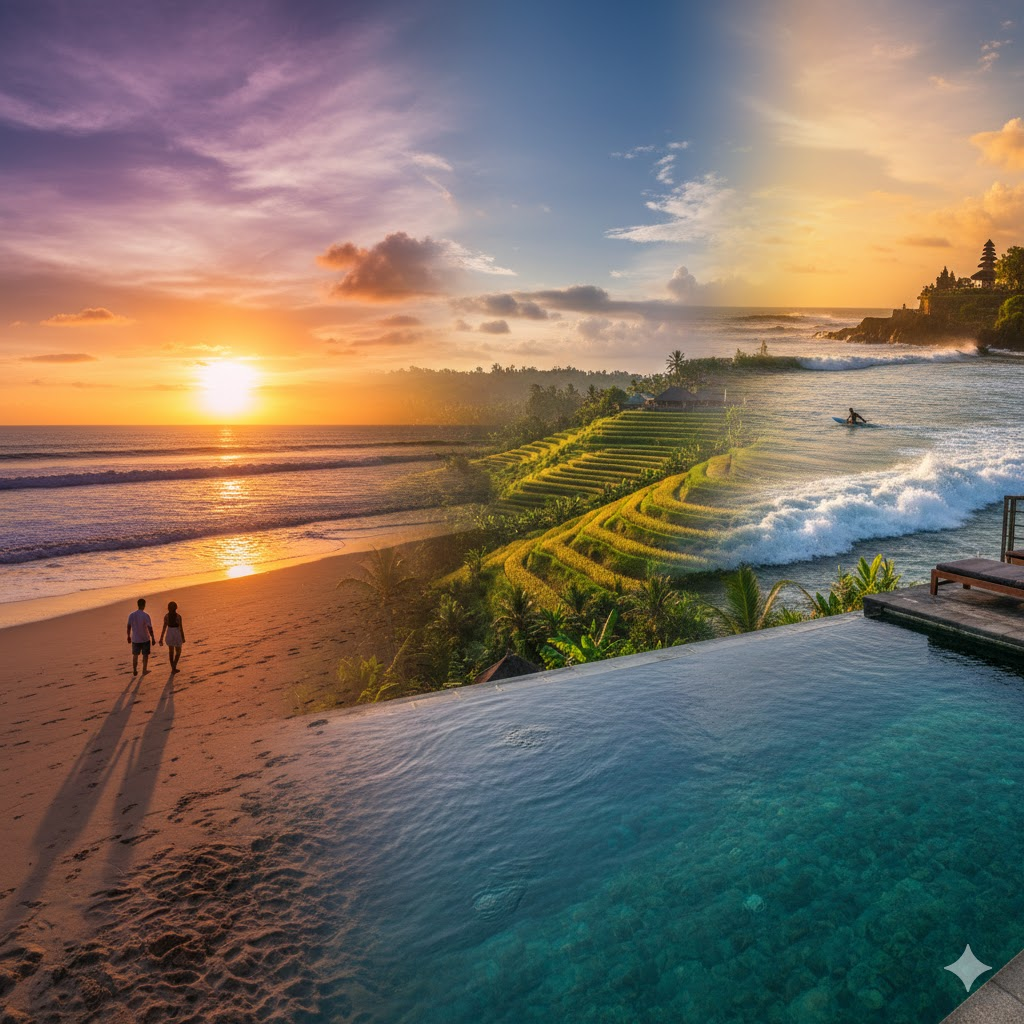 - 추천 활동: 파도가 좋은 시기라 '서핑'에 도전하기 가장 좋습니다. 또한, 우붓의 정글 뷰 리조트에서 즐기는 플로팅 조식이나, 스미냑의 힙한 비치클럽(포테이토 헤드, 라 파벨라 등)에서 일몰을 감상하며 칵테일 한 잔을 즐겨보세요.
