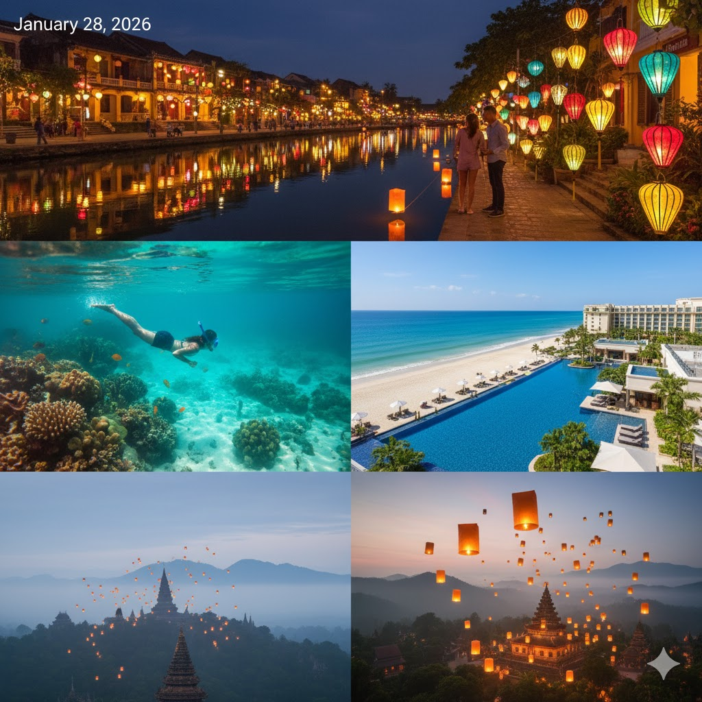 - 추천 활동: 핑크 성당이라 불리는 다낭 대성당과 한시장에서의 아오자이 맞춤 체험을 추천합니다. 또한, 밤에는 호이안 올드타운으로 이동해 소원을 담은 풍등을 띄워보세요. 12월의 호이안은 화려한 조명과 연말 장식으로 더욱 로맨틱해집니다.